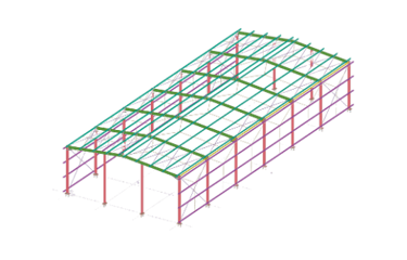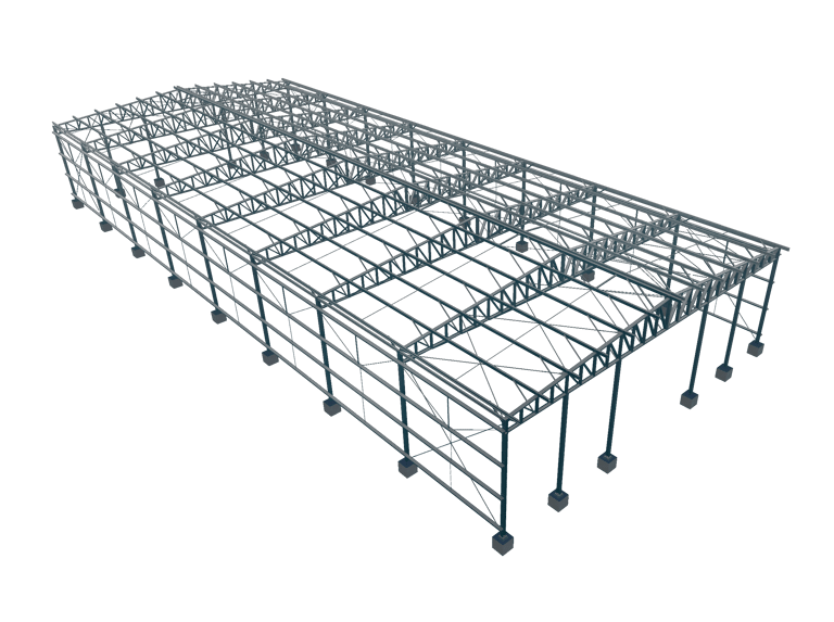 Projeto estrutural para galpão metálico para uso logístico ou agroindustrial, com dimensionamento conforme NBR 8800, foco em grandes vãos, estabilidade global e otimização do peso do aço. Projetos prontos para fabricação e montagem. Atendemos em todo Brasil